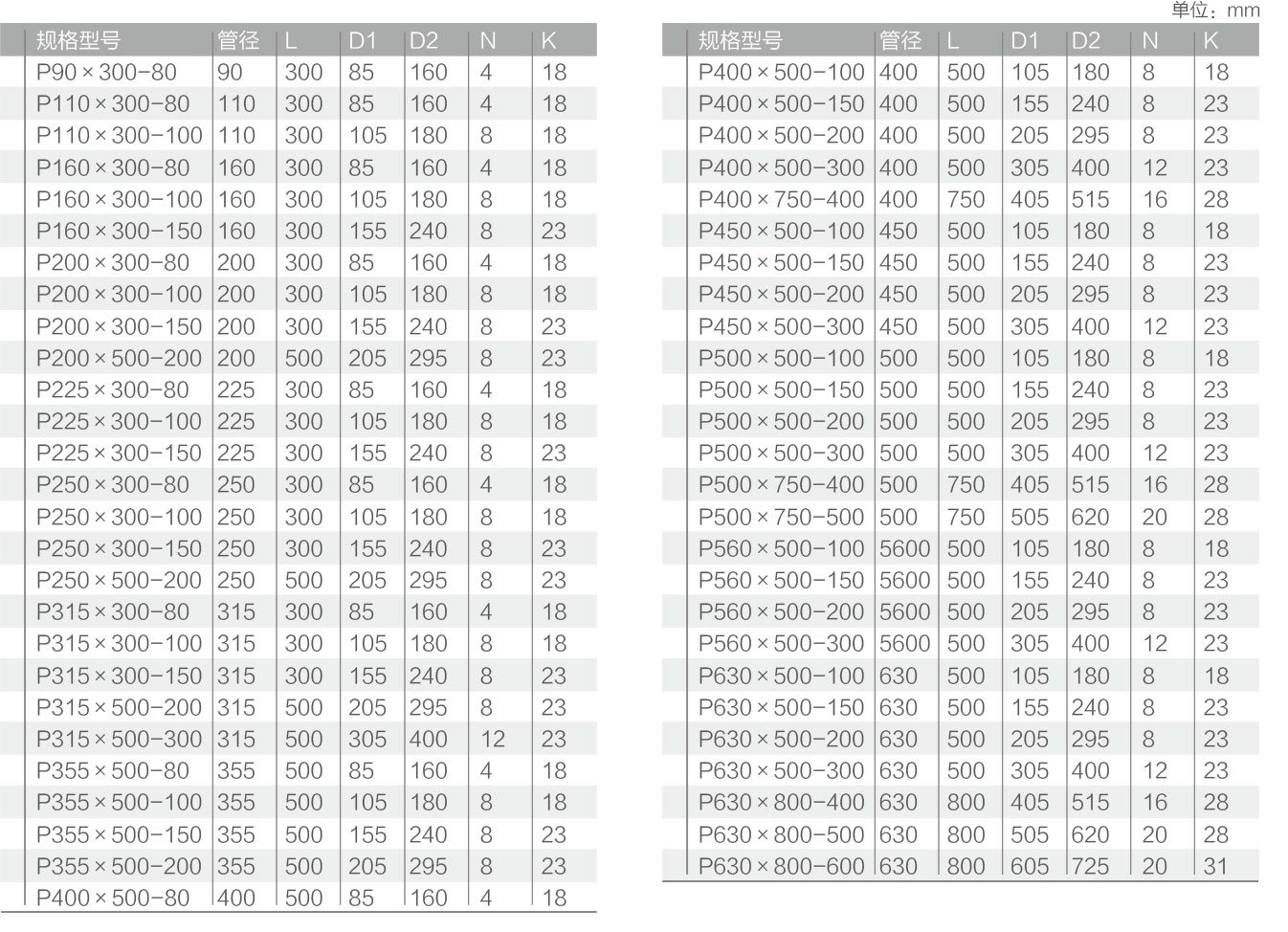 PE、PVC管全密封開(kāi)孔分流器主要尺寸