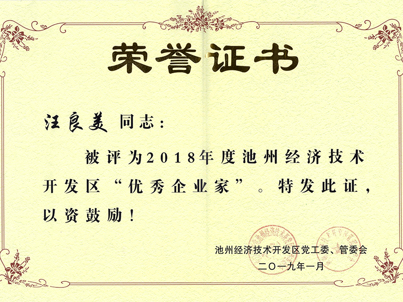 2019年1月25日,池州開(kāi)發(fā)區2018年度創(chuàng )新發(fā)展骨干企業(yè)和優(yōu)秀企業(yè)家表彰大會(huì )隆重舉行,安徽恒生科技集團有幸榮獲池州開(kāi)發(fā)區2018年度“突出貢獻獎”,汪良美董事長(cháng)也再一次被評為“優(yōu)秀企業(yè)家”。