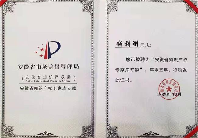 此次錢(qián)利剛副總入選“安徽省知識產(chǎn)權專(zhuān)家庫專(zhuān)家”是我司注重科技創(chuàng )新和人才培養的直接體現。