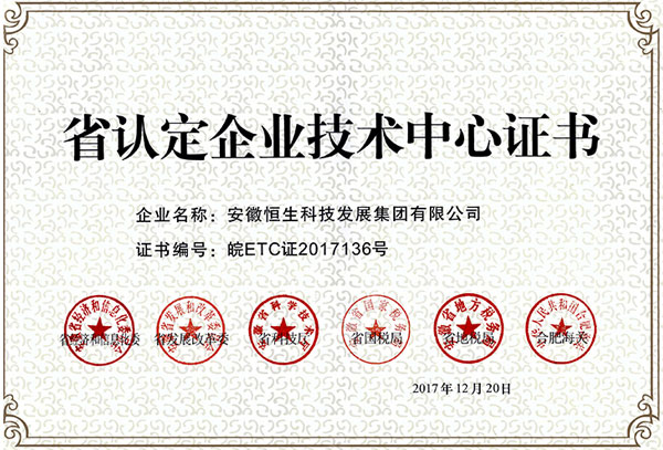 恒生集團企業(yè)研發(fā)中心被認定為安徽省第26批省認定企業(yè)技術(shù)中心